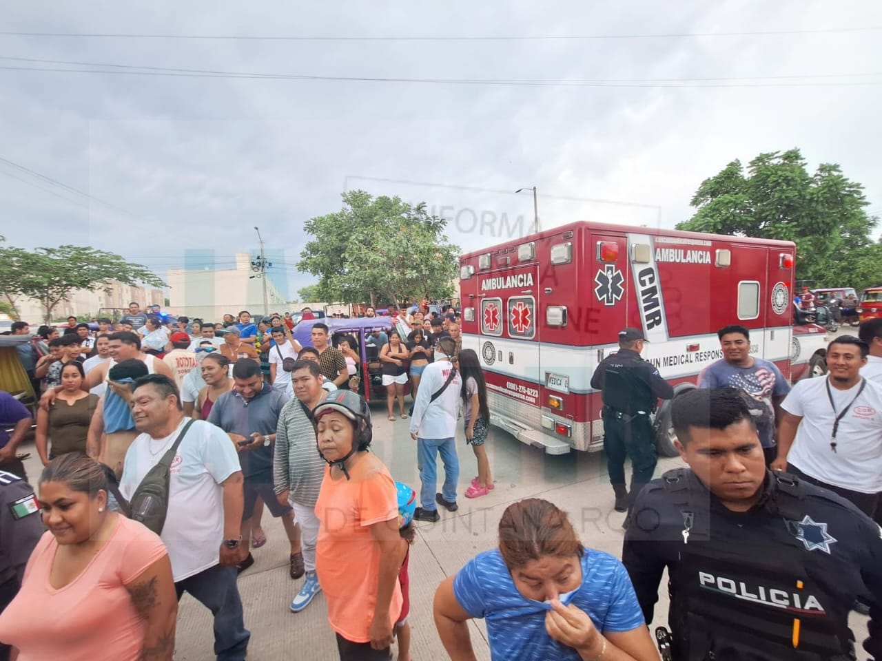 Alrededor de cien personas y más de 50 mototaxis se concentraron en la zona, lo que elevó la tensión y motivó que vecinos pidieran apoyo al 911. Minutos después arribaron elementos de la Policía Municipal y Estatal, quienes intervinieron para dispersar a la multitud y rescatar a la mujer, que fue trasladada con diversas lesiones al Hospital General Jesús Kumate Rodríguez.