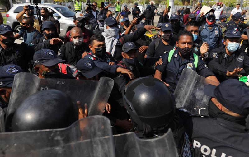 Decenas de policías se golpearon entre sí durante una manifestación en la que un grupo de ellos exigía mejores condiciones laborales en Acapulco, en el estado de Guerrero.