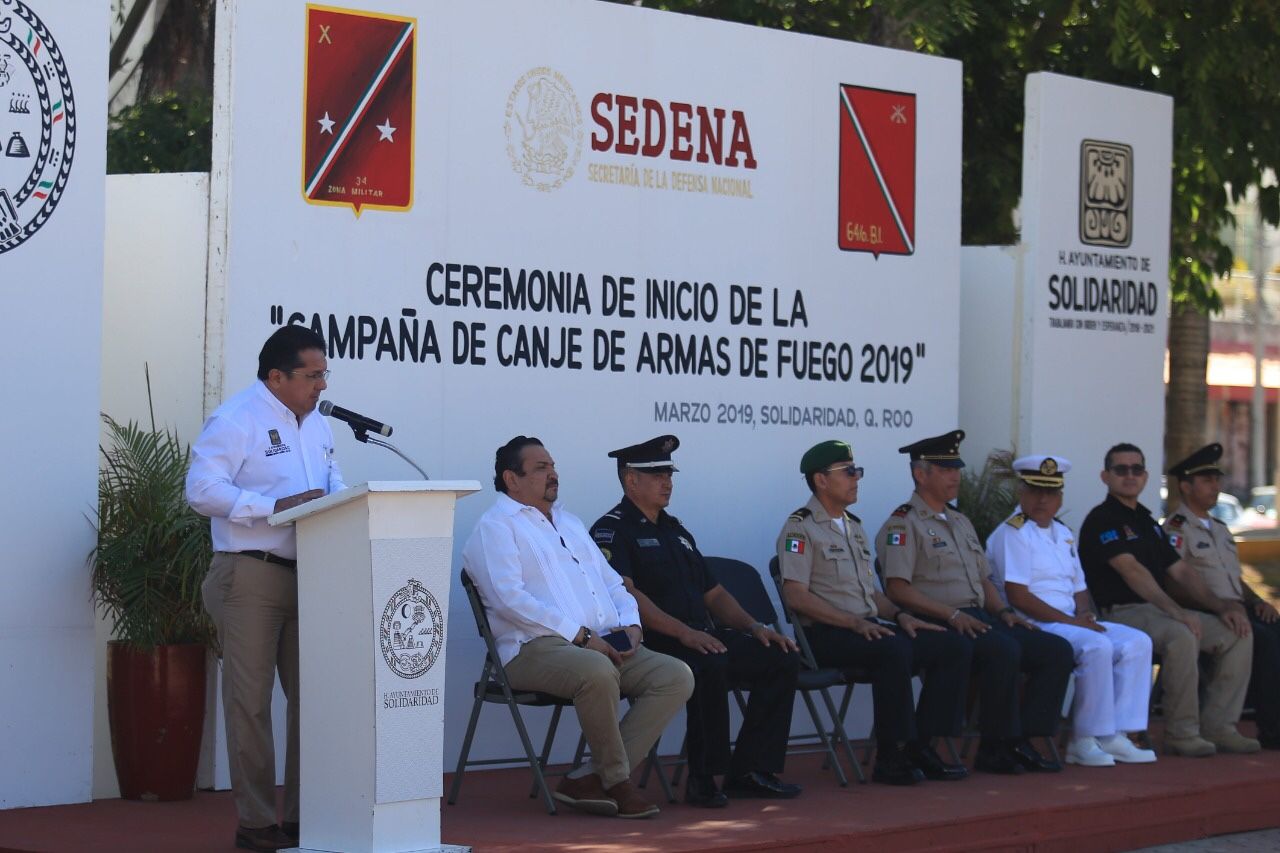 PLAYA DEL CARMEN, Quintana Roo, 28 de marzo.- Con el objetivo de contribuir con la iniciativa del Gobierno de la República en su tarea de garantizar la seguridad de los ciudadanos y la pacificación del país, la administración municipal que encabeza la presidenta Laura Beristain Navarrete, se sumó al programa de Canje de Armas implementado por el Ejército Nacional.