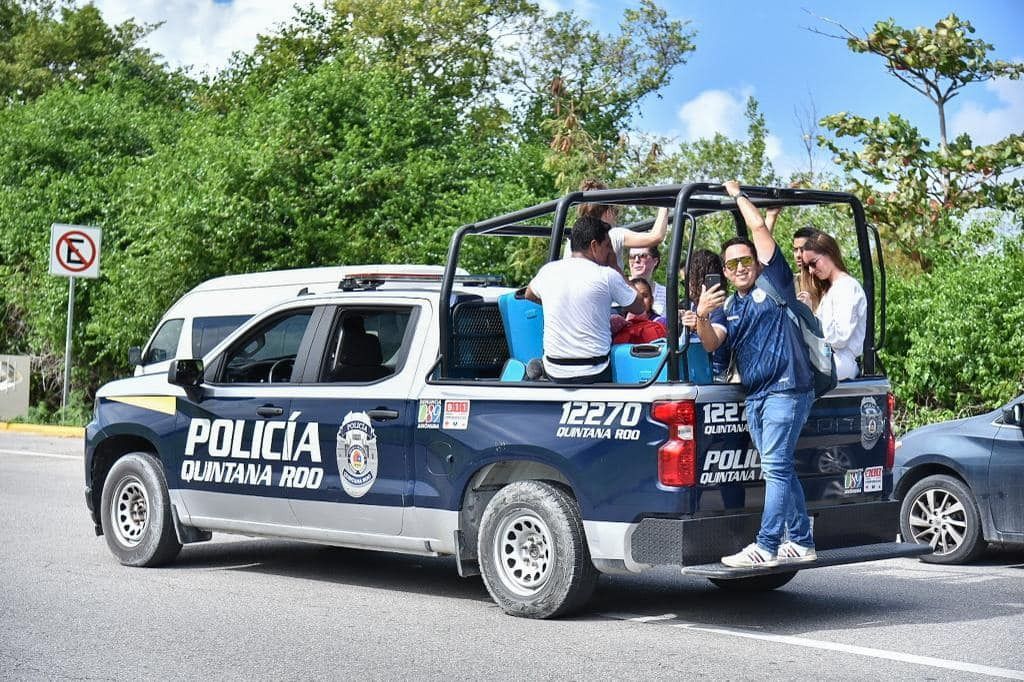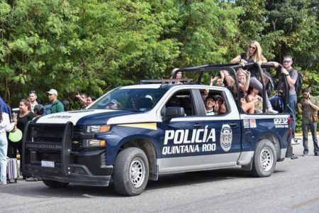 CANCÚN, Quintana Roo, 23 de enero. – Patrullas de la Policía Estatal esta tarde fueron movilizadas para trasladar a los turistas que necesitaban llegar al Aeropuerto Internacional de Cancún y que debieron salir de la Zona Hotelera a pie, debido a los bloqueos realizados por taxistas, en sus dos accesos.