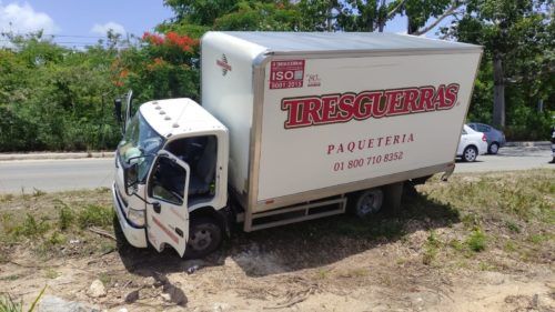 El hecho se registró sobre el boulevard Playa del Carmen antes del filtro policiaco 2 en dirección de norte a sur a la altura de Xplor, conductor de una mini van se le atravesó en su camino al conductor del camión de la empresa Tres Guerras al intentar rebasar.