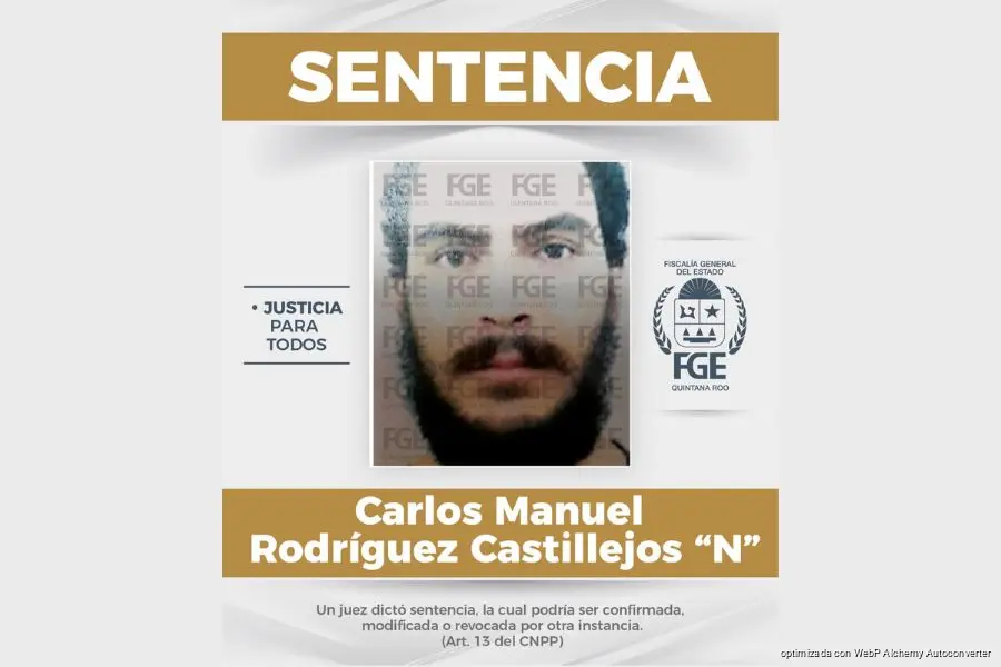 CANCÚN, 29 de enero de 2026– Luego de que la Fiscalía General del Estado, a través de la Fiscalía Especializada en Combate a Delitos Cometidos Contra la Mujer y por Razones de Género, aportara las pruebas correspondientes, un Juez de Juicio emitió sentencia condenatoria con pena privativa de la libertad de 10 años, para Carlos Manuel Rodríguez Castillejos, por el delito de violencia familiar en agravio de su expareja, en este municipio.