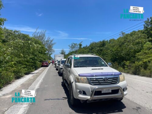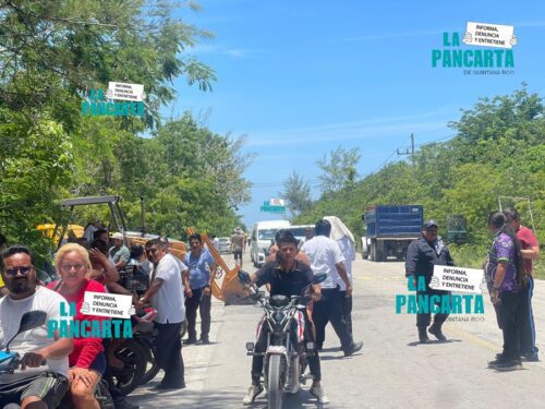 MAHAHUAL, Quintana Roo, 23 de Julio.— Habitantes de Mahahual, mantuvieron cerrado por más de cuatro horas la carretera Cafetal – Mahahual al denunciar desalojos cometidos en Punta Tam y al menos tres colonias más por la Fiscalía General del Estado (FGE) aunado a las distintas demandas de la comunidad.
