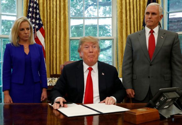 Una fuente de la Casa Blanca confirmó que Trump rubricó un documento que permitirá que los niños que cruzan la frontera sur junto a sus padres indocumentados se queden con ellos en centros de detención de inmigrantes durante un plazo de tiempo. (FUENTE: Noticias MVS)