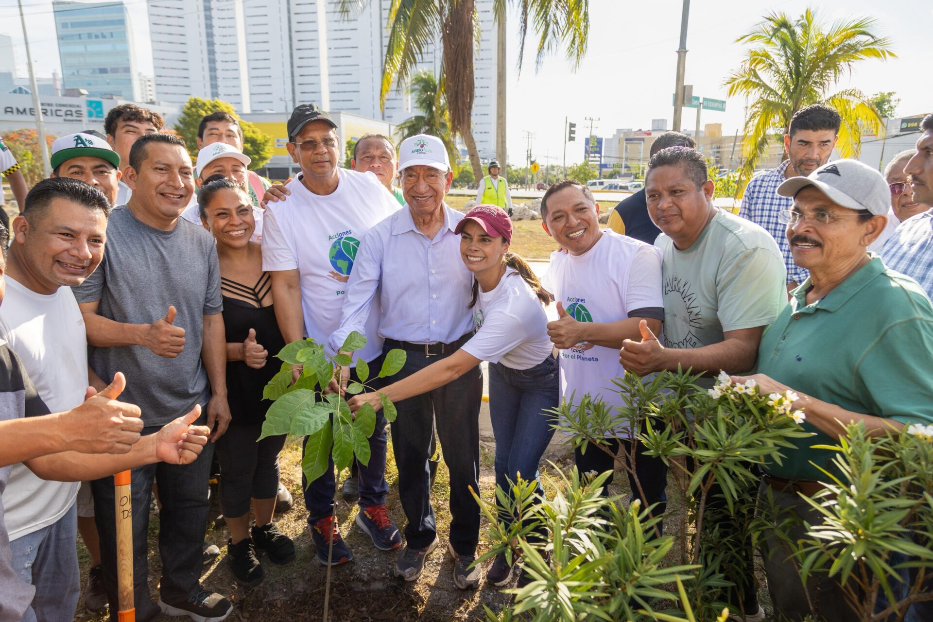 Cancún, Benito Juárez, 06 de septiembre de 2027.- Con el firme propósito de contribuir a la lucha contra el calentamiento global y fortalecer las acciones a favor del medio ambiente, el secretario general del Comité Ejecutivo Nacional de la CROC, Isaías González Cuevas, junto con la presidenta municipal de Benito Juárez, Ana Paty Peralta, encabezaron la jornada “Reforesta Cancún”, donde se sembraron 150 árboles endémicos de la región.