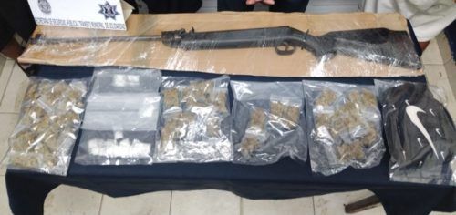 Tras una inspección de seguridad tenían en su posesión 49 envoltorios con posible marihuana, 28 con los que parece la droga llamada cristal y al interior del automóvil encontraron una réplica de arma larga tipo escopeta, por lo que fueron puestos a disposición de la Fiscalía Especializada en Delitos Contra la Salud en su Modalidad de Narcomenudeo.