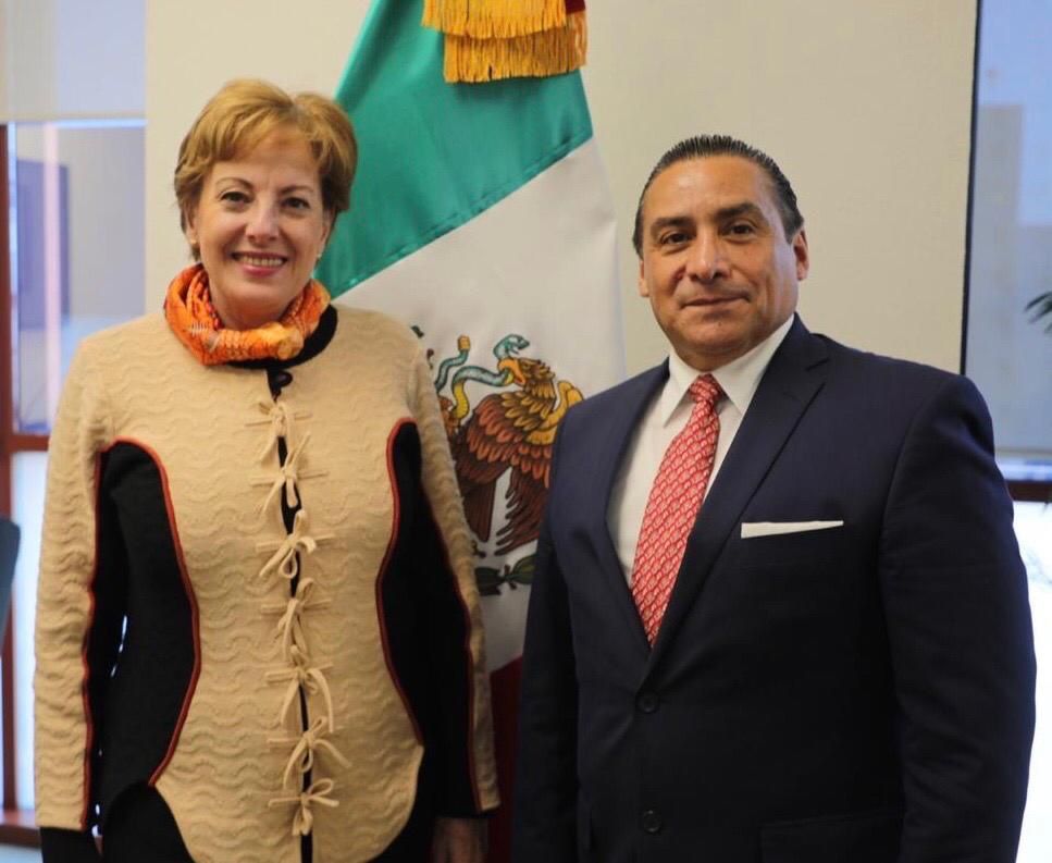 La reunión con la embajadora, se realizó en la Ciudad de México en las oficinas de la Secretaría de Relaciones Exteriores, en donde también estuvieron presentes el director general de Europa de la Secretaría de Relaciones Exteriores de México, Aguilar Calvo y el representante de la oficina del Canciller, Marcelo Ebrard Casaubon, Mario Quintanilla.