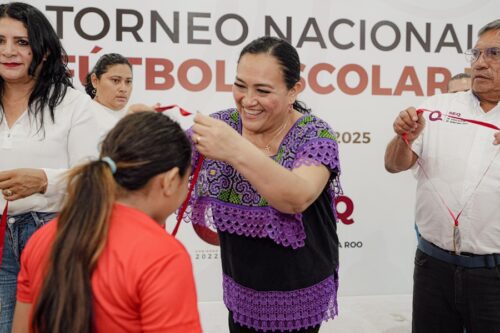 En el evento realizado en el gimnasio “Nohoch Sukun”, la titular de la SEQ aseguró que: “Este torneo no solo es una competencia deportiva. Es, sobre todo, una oportunidad para fomentar una vida saludable, fortalecer la cultura del deporte y contribuir al desarrollo integral de nuestras niñas y niños, en los ámbitos físico, social y emocional. A través del fútbol escolar promovemos hábitos positivos, disciplina, compañerismo y liderazgo”.
