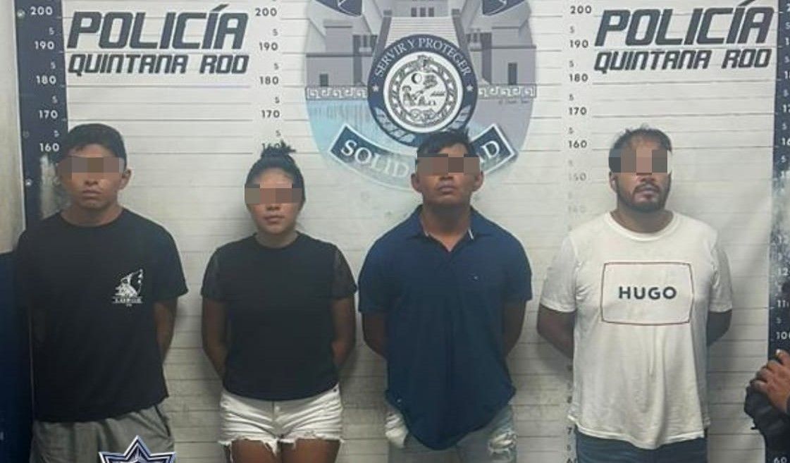 Tras arribar a la avenida Colosio entre avenidas 15 y 20, los policías se percataron que del interior de un predio se escuchaban gritos de auxilio, al aproximarse observaron a varios adultos y menores pidiendo ayuda. Fue en dicho lugar donde realizaron la detención de Alejandro “N” de 26 años de edad, Dilan “N” de 29 años y Suly “N” de 24 años, oriundos de este estado, así como Armando”N” de 33 años, originario de Tlaxcala.