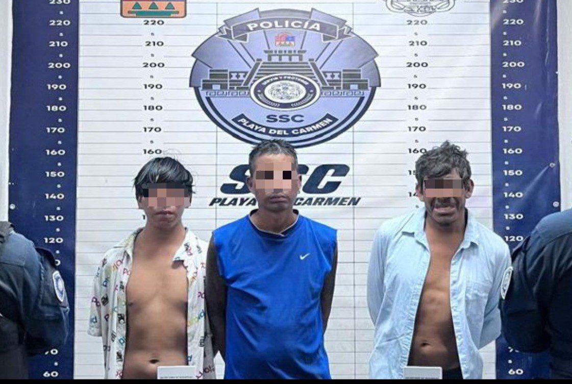 Los detenidos fueron identificados como Brayan N., de 21 años de edad, originario de Chiapas; Adán N., de 36 años, también originario de Chiapas; y Mauricio N., de 49 años, originario del Estado de México.