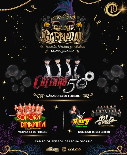 En tanto, en Leona Vicario, el programa incluye a La Sonora Dinamita el viernes 13; Calibre 50 el sábado 14; y el domingo 15 a Viry Primera “La Mera Mera” y Paleto, La Voz de la Cumbia.