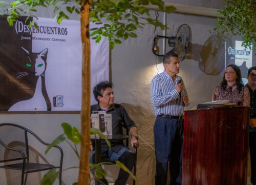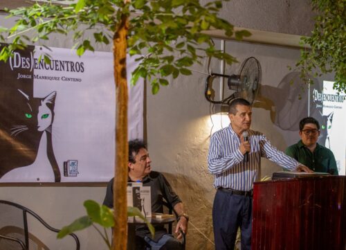 CHETUMAL.-El escritor Jorge Manríquez Centeno presentó su primera obra literaria (Des)encuentros) en el Café 290 de Chetumal, con el sello editorial Rosa Ma. Porrúa y prólogo del autor Alberto Guerra Naranjo, marcando así el inicio de su trayectoria como narrador.