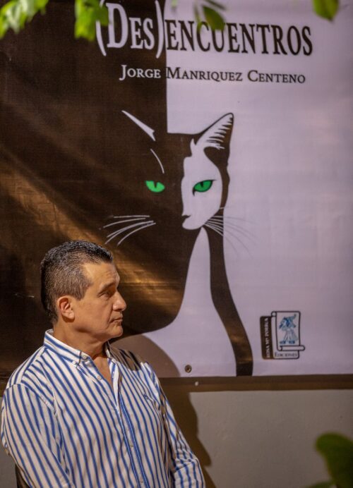 El autor compartió que (Des)encuentros nació de una vivencia personal: la pérdida de su gato Maní, a quien rescató siendo cachorro y cuya desaparición lo llevó a escribir el relato inicial de su libro. “De una sentada escribí Maní, y de ahí fueron surgiendo otros más. Las escenas dantescas y fantásticas de las oficinas donde trabajé poblaron parte de mi memoria, y trato de darles vida en (Des)encuentros”, narró el escritor, quien se define como “chilango de nacimiento y chetumaleño de corazón”.