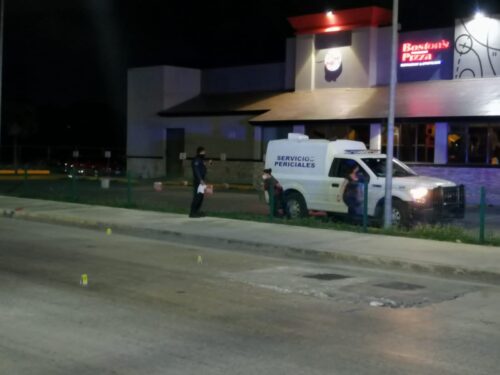 El lugar fue acordonada por la Policía Municipal Preventiva como primer respondiente, hasta la llegada de las autoridades ministeriales y de los peritos en criminalística para la recolecta de los incidicios, tres casquillos percutidos.