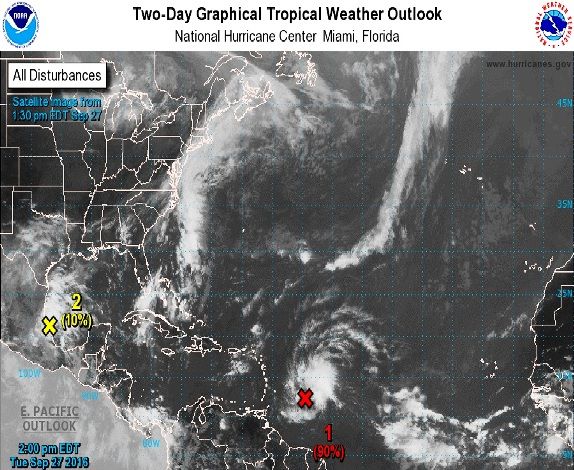 El sistema de baja presión continúa asociado a una fuerte onda tropical; localizada en el Atlántico Tropical al sureste de la Isla Barbados (Arco de las Antillas Menores); en las últimas horas ha mantenido su organización, por el momento no se ha determinado si tiene una circulación cerrada, un avión caza-huracanes ha iniciado la misión de análisis del sistema para determinar grado de evolución; más sin embargo en su movimiento al oeste-noroeste está llegando a una zona donde podrá encontrar mejores condiciones para un desarrollo tropical mantiene una probabilidad alta del 90% de evolucionar en un sistema tropical; según información del Centro Nacional de Huracanes de Miami, Florida, E.U.A., se monitorea.