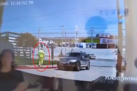 Minutos después salió vestido con un uniforme fosforescente, mismo que le permitió pasar desapercibido en la calle.