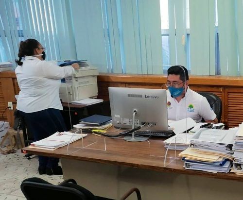 CHETUMAL, Quintana Roo, 18 de junio.-La Comisión de Agua Potable y Alcantarillado (CAPA) instaló barreras de acrílico en áreas de atención al público para favorecer el distanciamiento social entre el personal y la ciudadanía que realiza trámites; y así prevenir el contagio de Covid-19.