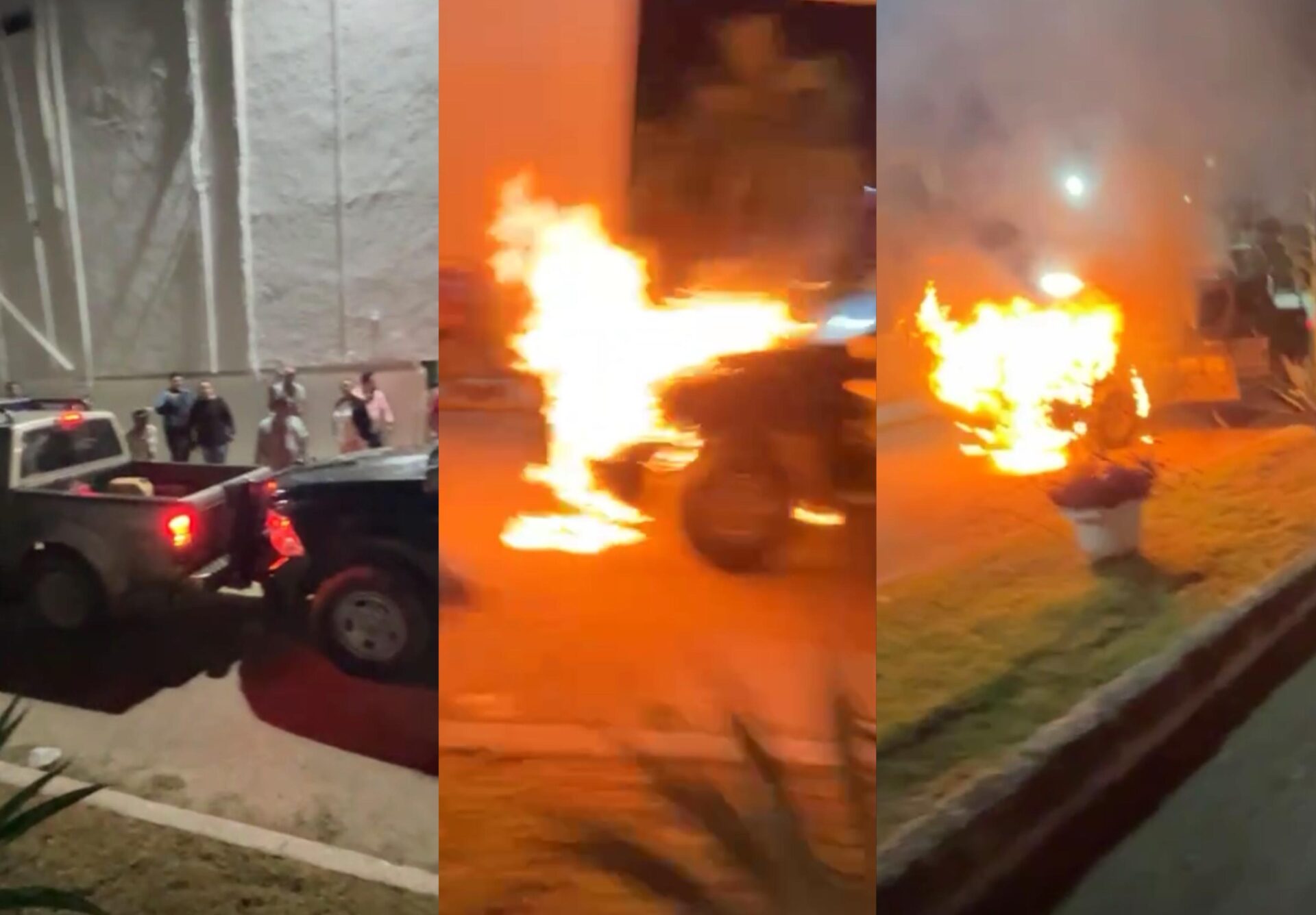 Ante la exigencia de los habitantes para liberar a Enoc Eduardo R. P. hombres ingresaron con una camioneta y gasolina a las instalaciones, para finalmente incendiar una patrulla. Una persona más resultó lesionada.