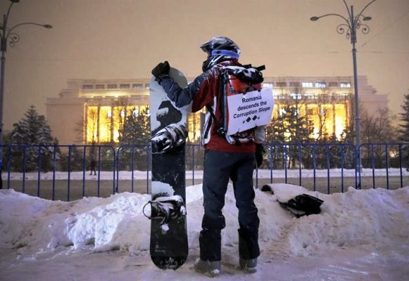 En desafío de las gélidas temperaturas que se registran en Bucarest (5 grados bajo cero) los manifestantes aguantaron hasta cerca de la medianoche.