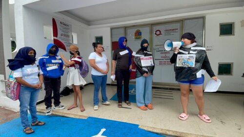 CHETUMAL, Quintana Roo, 07 de octubre. – Integrantes del Frente Nacional Mujeres (FNM) se manifestaron a las afueras de la Comisión Ejecutiva de Atención a Víctimas del Estado de Quintana Roo (CEAVEQROO) y acusaron a la titular de la dependencia María Elena García Flores, por presuntamente archivar más de 100 carpetas de investigación en el estado.