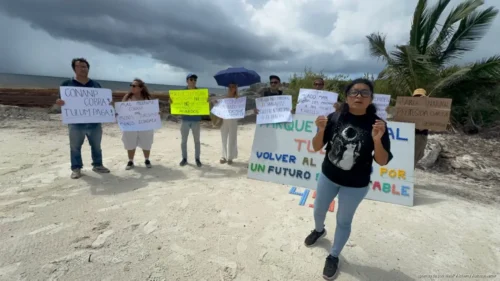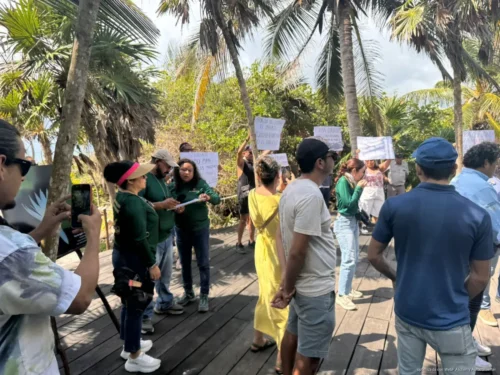 La protesta se llevó a cabo en el Parque del Jaguar, donde señalaron que las medidas implementadas han generado una disminución significativa en la afluencia de visitantes, particularmente en la zona hotelera.