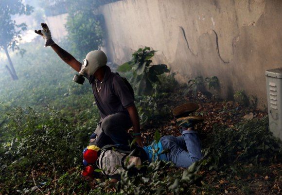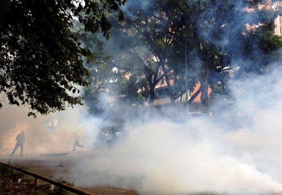 Cuando se acercaba, con las manos en alto, a la barrera con que militares bloqueaban el paso en la autopista Francisco Fajardo, el líder opositor Henrique Capriles recibió una lluvia de gases lacrimógenos. Varios manifestantes huyeron lanzándose al río Guaire (con aguas negras).
