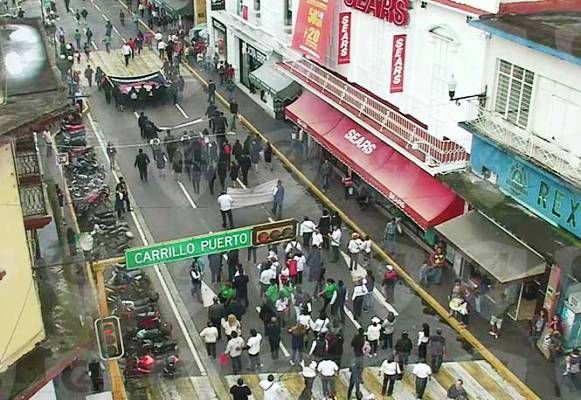 CIUDAD DE MÉXICO, 17 de noviembre.-Trabajadores de diversas instancias dependientes del gobierno de Veracruz mantienen tomadas instalaciones y colapsan las calles con bloqueos en los que se exige que les sean entregados sus pagos quincenales y para demandar que les sean cubiertas las prestaciones correspondientes a la temporada decembrina.