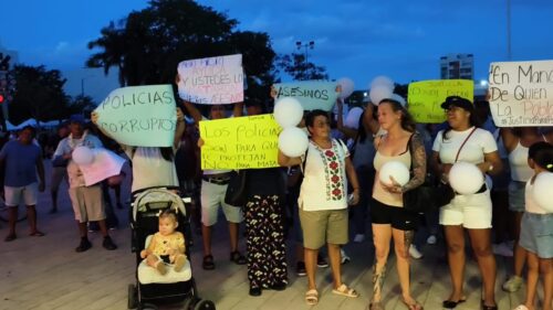 PLAYA DEL CARMEN, Quintana Roo, 26 de septiembre. — Familiares amigos e integrantes la comunidad marítima se manifiestan en la plaza 28 de Julio frente al palacio municipal para exigir la justicia por lo que consideran fue un asesinato de uno de sus compañeros, Pablo Cruz.