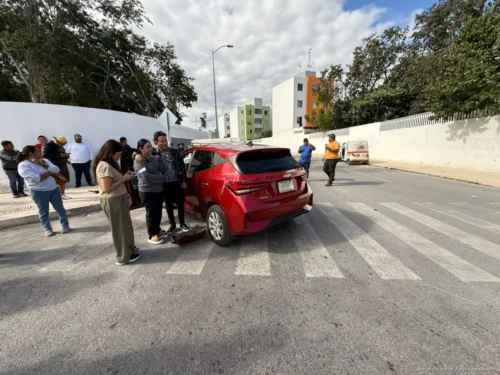 Provoca choque múltiple al no respetar alto y deja motociclista lesionado en Xcacel