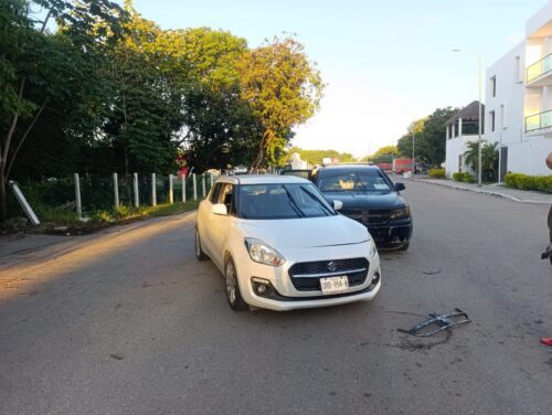 PLAYA DEL CARMEN, Quintana Roo, 19 de noviembre de 2025.– Provocó un conductor un fuerte accidente vehicular en la colonia Forjadores al salir sin precaución de una avenida, lo que derivó en un choque con daños materiales considerables, aunque sin personas lesionadas.