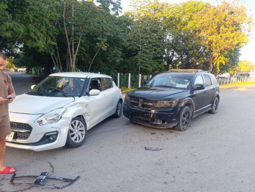 El percance ocurrió alrededor de las 9:00 de la mañana cuando el chofer de un Suzuki Swift color blanco salió de la calle 25 Sur y, al incorporarse a la avenida 110, no realizó su alto obligatorio. En ese momento fue impactado en un costado por una camioneta Dodge Journey color azul marino, que circulaba con preferencia de paso.
