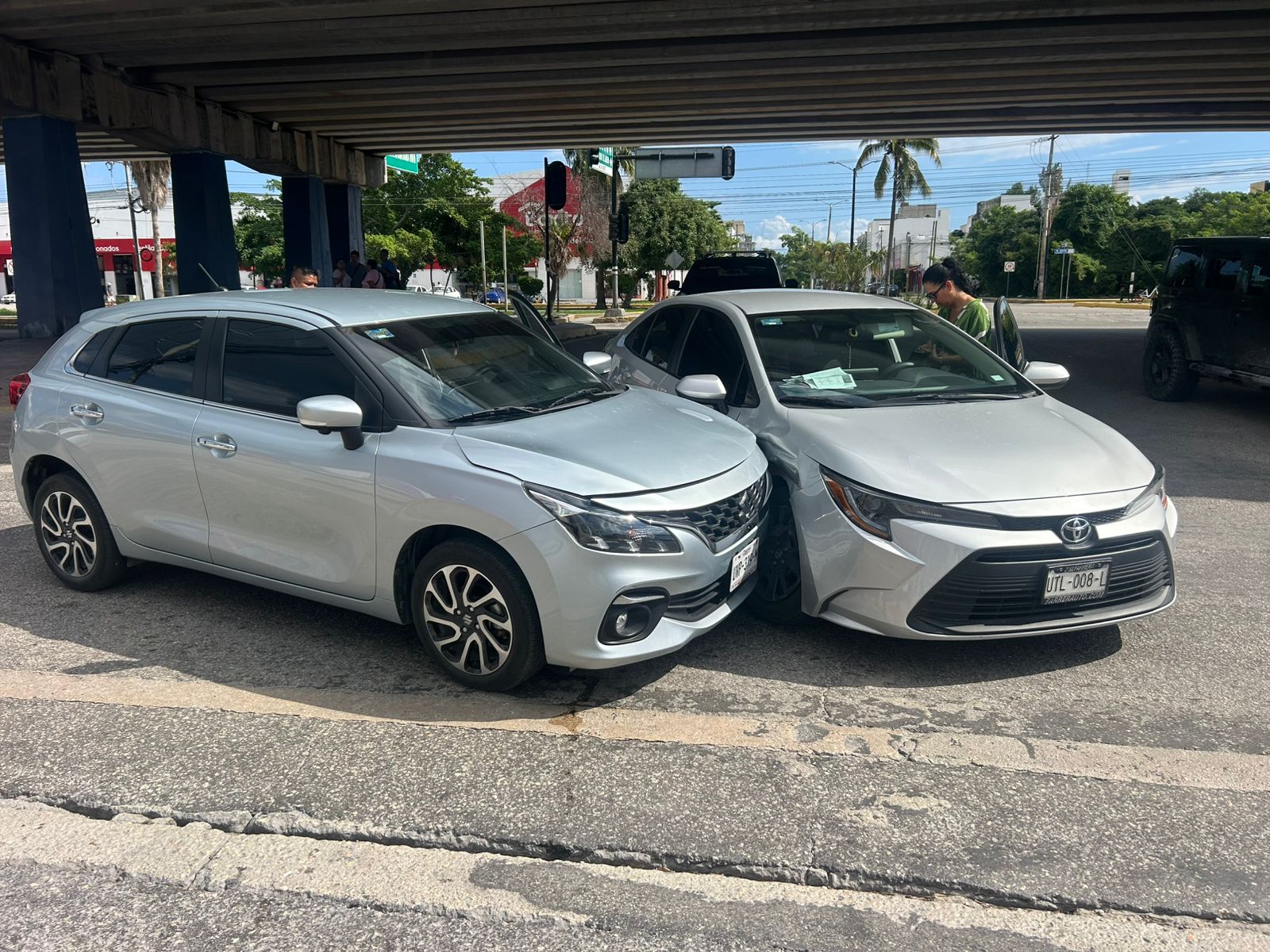 El hecho ocurrió alrededor de las 12:30 del día cuando el chofer de un Suzuki Swift color gris circulaba hacia el sur sobre el bulevar Playa del Carmen. Al llegar a la avenida 38, impactó el costado de un Toyota Corolla, también gris, cuyo conductor intentó cruzar con la luz amarilla y no logró completar la maniobra.