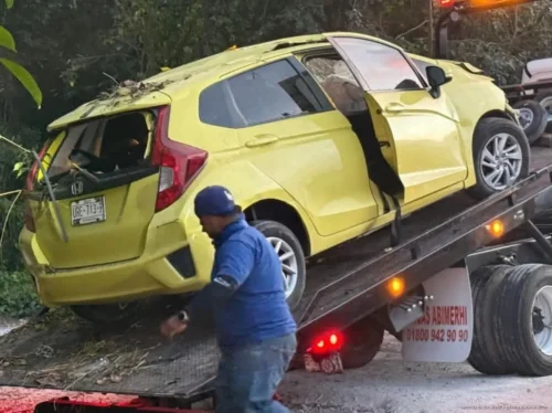 PLAYA DEL CARMEN, Quintana Roo, 23 de febrero de 2026.- Se registró un fuerte accidente de tránsito sobre la carretera federal 307, en el tramo de Tulum a Playa del Carmen, a la altura del hotel Bel-Air, en dirección de sur a norte, que dejó como saldo cuatro adultos lesionados —dos mujeres y dos hombres— así como una menor de edad.