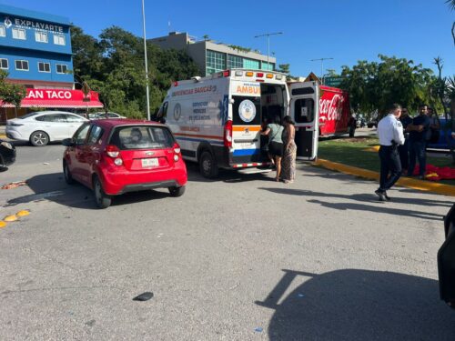 PLAYA DEL CARMEN, Quintana Roo, 20 de diciembre.– Un motociclista resultó lesionado tras provocar un accidente múltiple al intentar ingresar a la plaza comercial Centro Maya, donde se vio involucrado un automóvil que lo impactó y otro más que salía del estacionamiento del lugar.