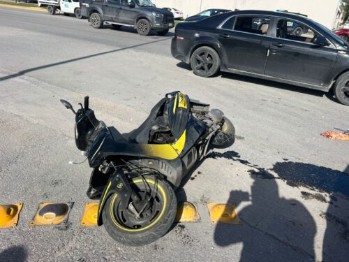 El percance ocurrió alrededor de las 13:30 horas, cuando el conductor de una motocicleta Italika 150, color amarillo, intentó incorporarse a la plaza desde la avenida 41 Sur, sin respetar la trayectoria de un vehículo Chevrolet Malibú, color negro, que circulaba con dirección hacia el oriente.
