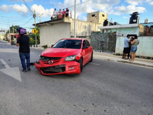 CANCÚN, Quintana Roo, 23 de noviembre de 2025.— Provocan dos mujeres un aparatoso accidente vehicular en la Región 245 de Cancún, luego de conducir bajo los efectos del alcohol durante la mañana de este domingo. El choque ocurrió alrededor de las 07:30 horas en la calle 34 de la colonia Sac-Be, donde un vehículo Mazda rojo perdió el control y terminó impactando a un Nissan Versa blanco que se encontraba en la misma vialidad.