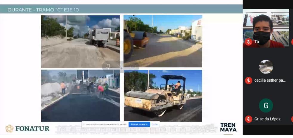 Ante la inquietud de los cerca de 30 asistentes a la reunión virtual, el funcionario precisó que una vez que se conozca el fallo de la licitación la empresa ganadora será la encargada de elaborar y presentar el proyecto ejecutivo de este tramo del Tren Maya, donde se considerarán las adecuaciones al puente, retornos y pasos a desnivel tanto para vehículos como para peatones, a fin de agilizar la vialidad entre ambas partes del municipio que están dividas por la autopista.