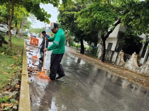 De igual forma hizo un llamado a la ciudadanía para evitar sacar la basura a las calles, y esperar a que pase el camión recolector para que no se conviertan en objetos de obstrucción de las alcantarillas y pozos de absorción y con ello contribuir a que fluya el agua de lluvia con mayor rapidez.