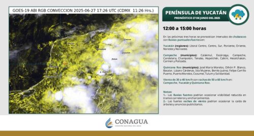 Puerto Morelos, Quintana Roo a 27 de junio de 2025.- Ante el anuncio del Servicio Meteorológico Nacional sobre las condiciones de clima que afectan con lluvias puntuales intensas (75 a 150 mm) al estado de Quintana Roo, debido a la interacción de una zona de baja presión con la onda tropical número 6, con posibilidades de desarrollo ciclónico, que alcanza a todos los municipios de la entidad, la Coordinación Municipal de Protección Civil en Puerto Morelos se mantiene en vigilancia permanente ante cualquier llamado ciudadano.
