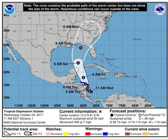 PUERTO MORELOS, Quintana Roo, 4 de octubre.- El gobierno de Puerto Morelos mantiene vigilancia permanente al desarrollo de la depresión tropical número 16 que se formó en el Mar Caribe y que la mañana de este miércoles se localizaba a 950 kilómetros al sureste de Puerto Costa Maya, con vientos máximos sostenidos de 55 kilómetros por hora, con rachas de 65 km/h.