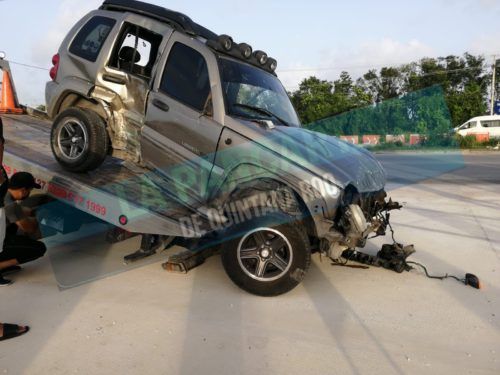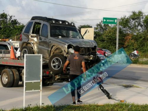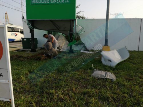 PLAYA DEL CARMEN, Quintana Roo, 25 de agosto. – Por rebasar por la derecha y el exceso de velocidad, el conductor de una camioneta terminó prensado en la unidad al chocar contra un poste metálico en una gasolinera sobre el bulevar, por lo que fue necesaria la intervención de los Bomberos y paramédicos quienes trasladaron al herido a un Hospital Privado.