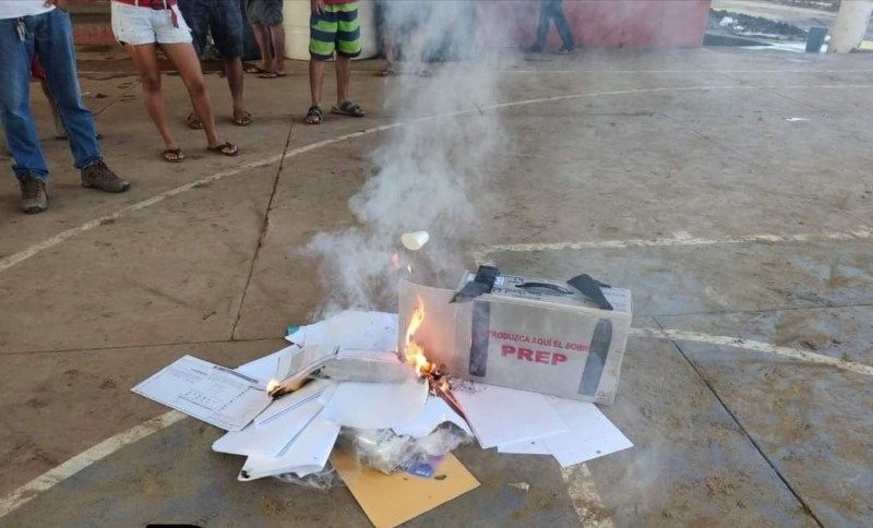 En Oaxaca, habitantes de varias comunidades quemaron la paquetería que sería utilizada para la jornada electoral de este domingo.