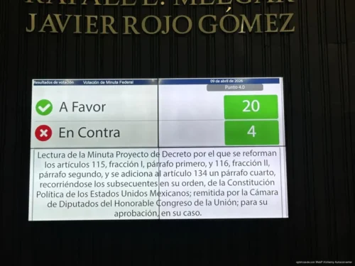 Finalmente, la reforma quedó avalada con el silencio de los panistas, con cuatro votos en contra y 20 a favor, sus efectos según los transitorios, a partir de la legislatura y Ayuntamientos subsecuentes, es decir después de la elección de 2027.