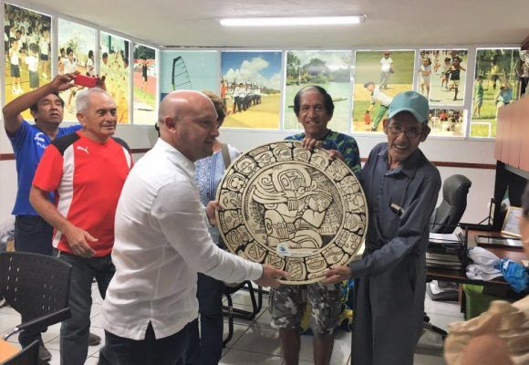 CHETUMAL, Quintana Roo, 20 de Julio.- Con el propósito de reconocer el apoyo de las autoridades, integrantes de equipos representativos de la disciplina de Cachibol en Chetumal, entregaron este miércoles al titular de la Comisión para la Juventud y el Deporte de Quintana Roo (Cojudeq), Antonio López Pinzón el premio de primer lugar general nacional obtenido en el pasado campeonato celebrado en la ciudad de Cancún.
