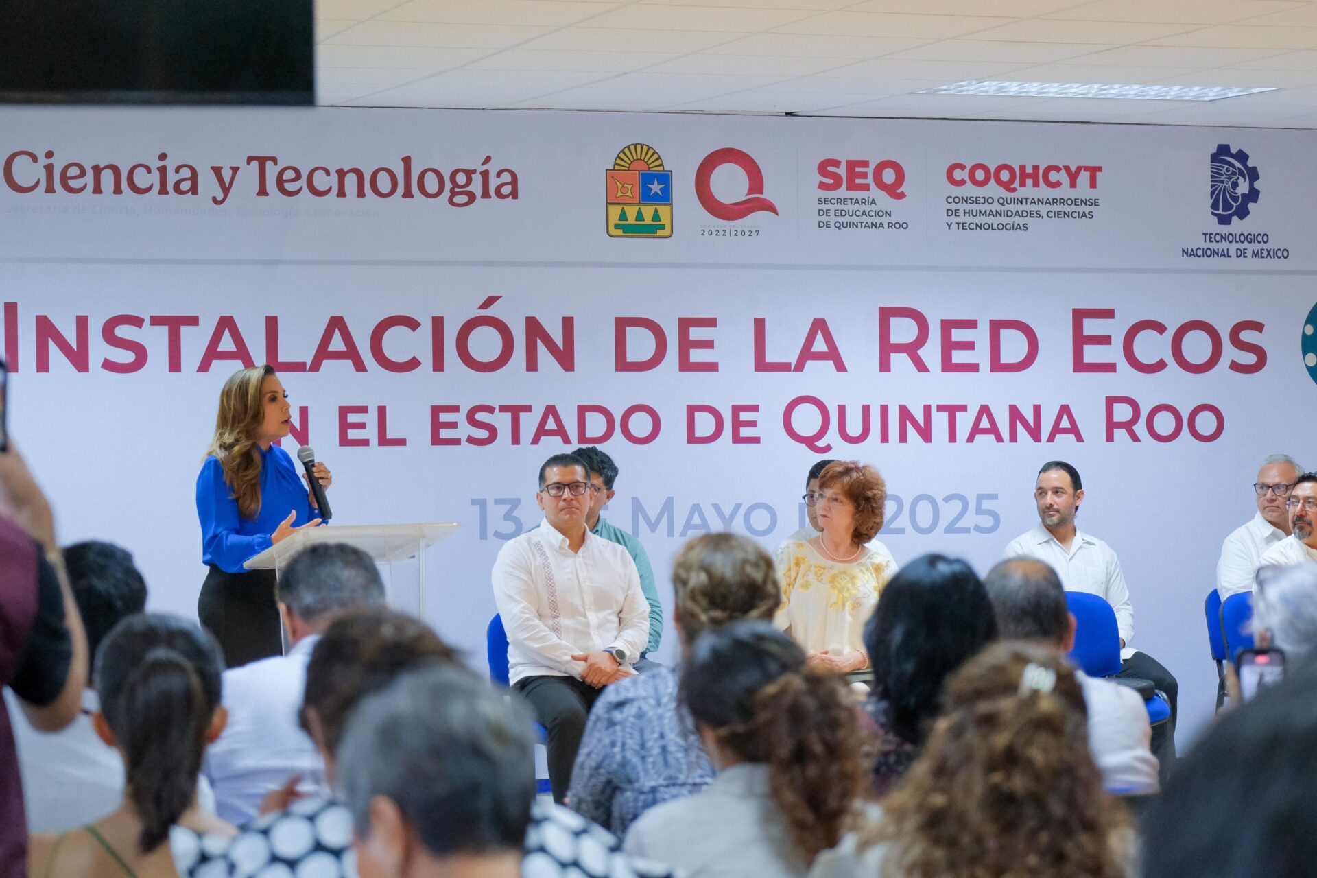 CANCÚN, Quintana Roo, 14 de mayo de 2025. – Al instalar la Red ECOS Quintana Roo, la gobernadora Mara Lezama Espinosa expresó que es un acto de congruencia con el país que queremos ser, y nuestra entidad se suma, con absoluta decisión, a la política nacional de hacer de México una potencia científica y tecnológica, de la mano de la Presidenta Claudia Sheinbaum Pardo.
