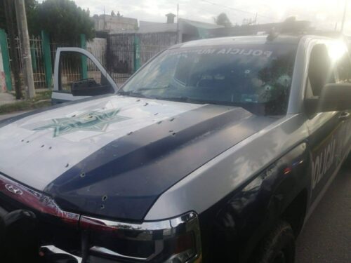 Los agresores le cerraron el paso a la patrulla y realizaron ráfagas de disparos contra la parte frontal de la unidad policíaca, la cual resultó con daños en el cofre y en el panorámico, pero los proyectiles no lesionaron de gravedad a los uniformados, pues se reportó que resultaron con lesiones leves, aparentemente por los fragmentos de vidrio del panorámico.