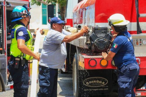 PLAYA DEL CARMEN, Quintana Roo, 05 de mayo. – En la actual administración de la presidenta Lili Campos se atiende con eficacia y eficiencia las llamadas de emergencia de la ciudadanía, como es el caso de la rápida reacción de los cuerpos de emergencia ante un incendio suscitado en la colonia El Pedregal.