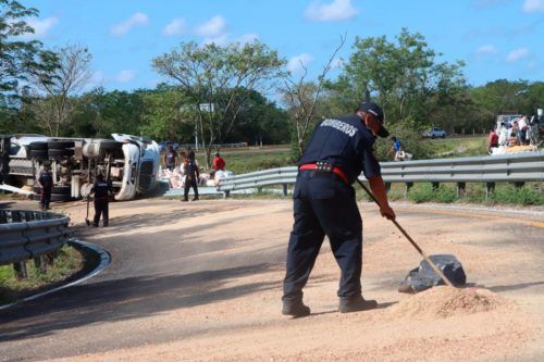 El conductor de la pesada unidad, transitaba sobre la vía Mérida-Campeche, y a la altura del kilómetro 149, intentó tomar una vía de caracol para dirigirse hacia la carretera a Muna, pero el exceso de velocidad con el que transitaba ocasionó que se saliera de su costado izquierdo y volcó.