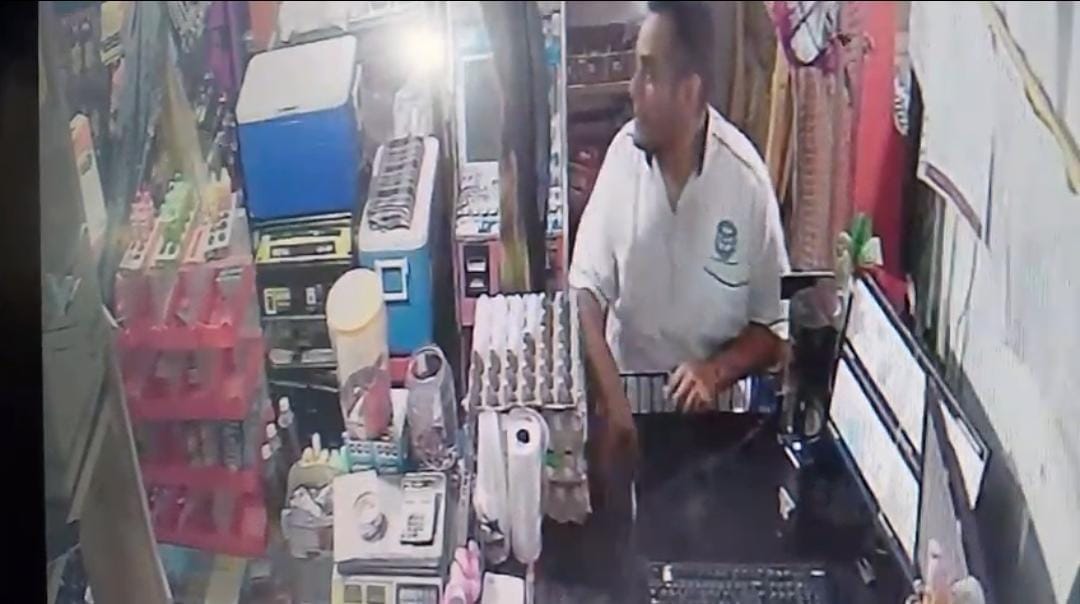 RATERAZO: Captan a taxista de Playa del Carmen robando un celular a una tiendita de abarrotes