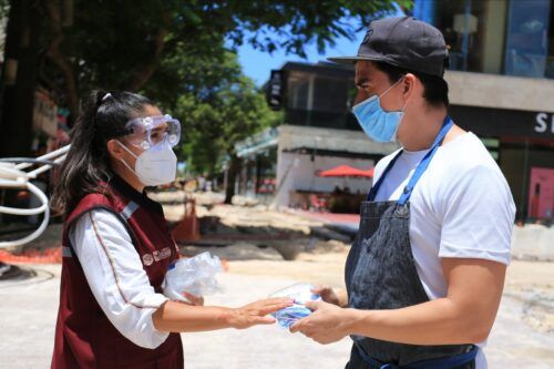 Estas actividades forman parte de la estrategia permanente de prevención con la que se distribuyen de manera gratuita cubrebocas y gel desinfectante a base de alcohol, fomentando su uso en todos los espacios de convivencia social, como medida eficaz para frenar los contagios.